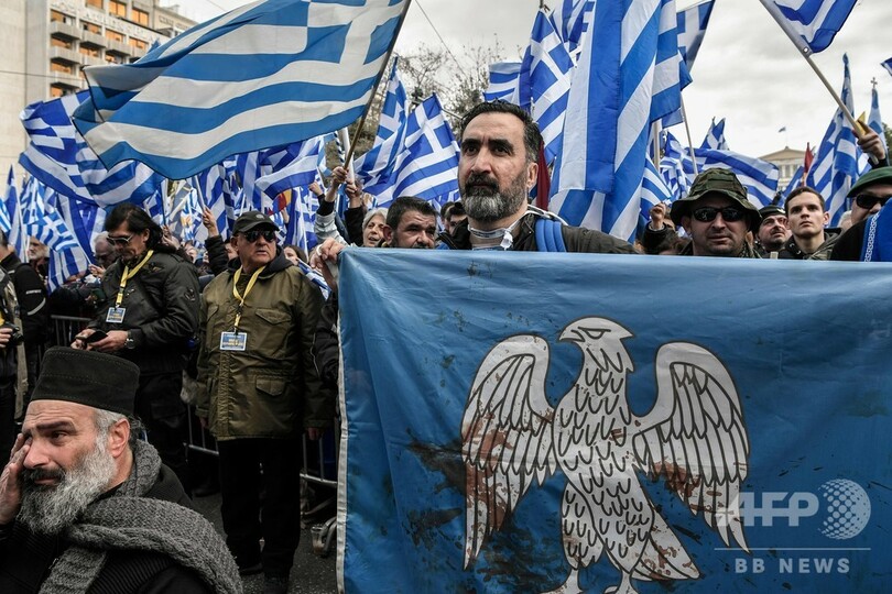 【1月21日 AFP】ギリシャの首都アテネで20日、隣国マケドニアの国名変更に関する政府間合意に抗議するデモが行われ、数万人が参加した。一部のデモ参加者と警察の間で衝突も起きた。
