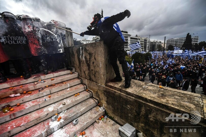【1月21日 AFP】ギリシャの首都アテネで20日、隣国マケドニアの国名変更に関する政府間合意に抗議するデモが行われ、数万人が参加した。一部のデモ参加者と警察の間で衝突も起きた。