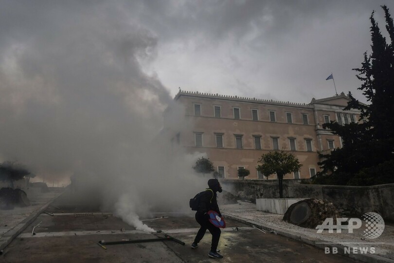 覆面の若者約30人が石などを投げて議会議事堂を封鎖しようとした際に小競り合いも発生。機動隊が催涙ガスなどを使って若者らを追い払った。政府は議事堂への侵入を図った集団は極右政党「黄金の夜明け(Golden Dawn)」の過激派だったとしている。