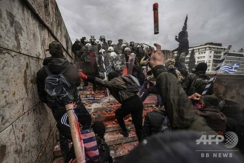 【1月21日 AFP】ギリシャの首都アテネで20日、隣国マケドニアの国名変更に関する政府間合意に抗議するデモが行われ、数万人が参加した。一部のデモ参加者と警察の間で衝突も起きた。