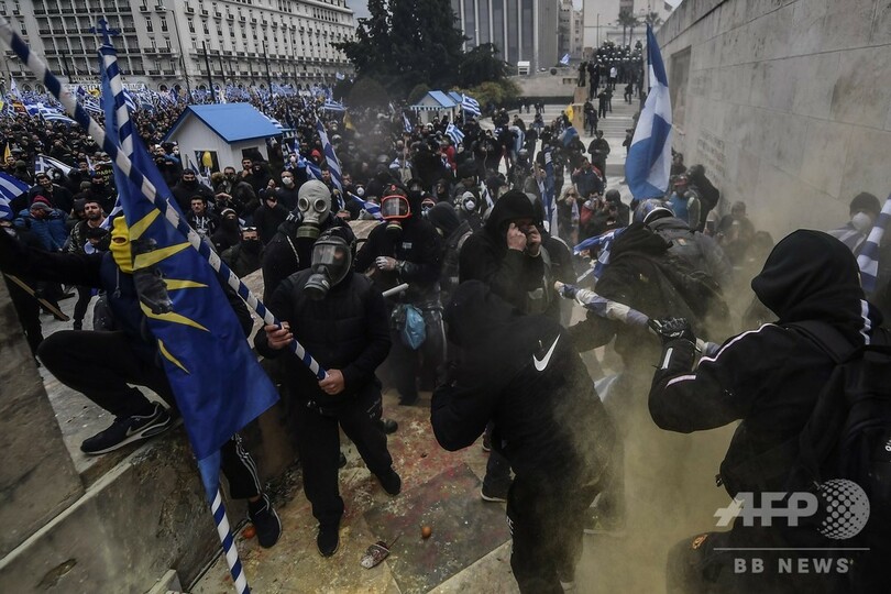 【1月21日 AFP】ギリシャの首都アテネで20日、隣国マケドニアの国名変更に関する政府間合意に抗議するデモが行われ、数万人が参加した。一部のデモ参加者と警察の間で衝突も起きた。