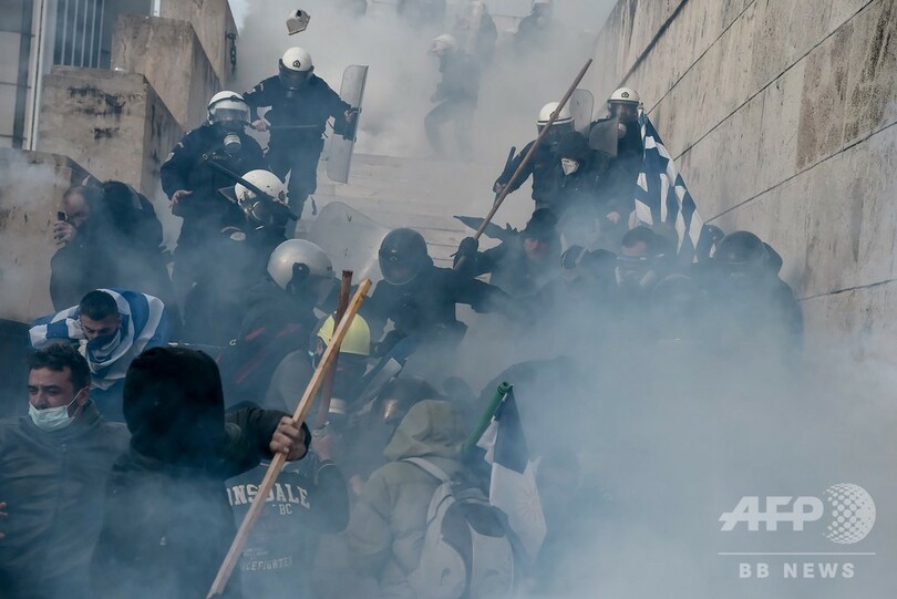 【1月21日 AFP】ギリシャの首都アテネで20日、隣国マケドニアの国名変更に関する政府間合意に抗議するデモが行われ、数万人が参加した。一部のデモ参加者と警察の間で衝突も起きた。