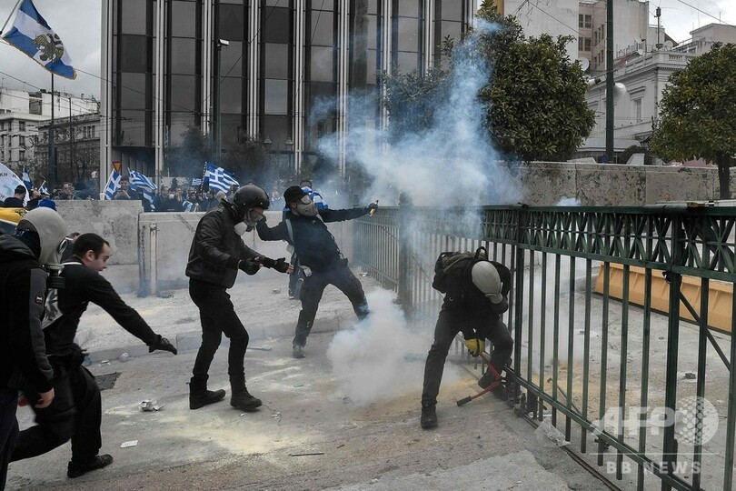 【1月21日 AFP】ギリシャの首都アテネで20日、隣国マケドニアの国名変更に関する政府間合意に抗議するデモが行われ、数万人が参加した。一部のデモ参加者と警察の間で衝突も起きた。