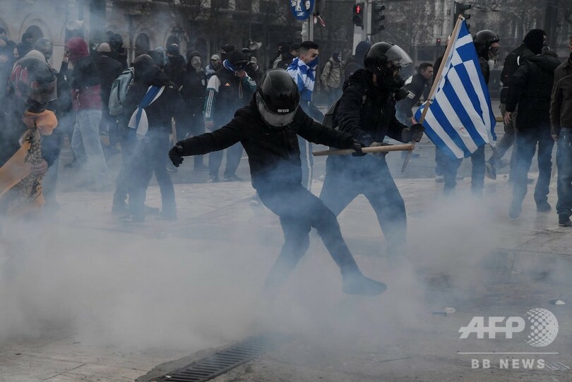 マケドニア国名変更、ギリシャで数万人がデモ 警察と衝突も