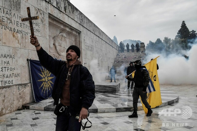 マケドニア国名変更、ギリシャで数万人がデモ 警察と衝突も