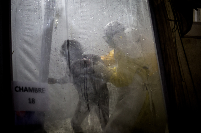 患者を隔離するため、NGOはセンターを設立し、職員は自らの接触を防ぐために頭の先から爪先まで防護服に身を包んでいる。エボラは非常に攻撃的なウイルスで、こうしたセンターに収容された人々が生還できないケースも多い。遺体も非常に感染力が強いため、埋葬時も慎重に扱う必要がある。
