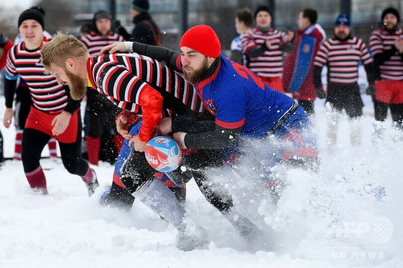 雪まき散らしタックル! 極寒のロシアで熱いラグビー試合