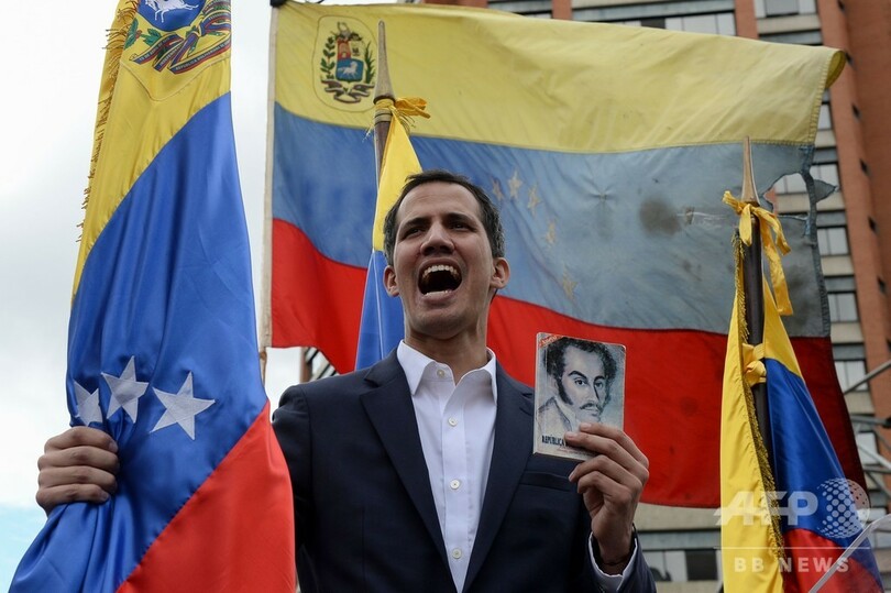 【1月25日 AFP】南米ベネズエラで、野党指導者のフアン・グアイド(Juan Guaido)国会議長(35)が「暫定大統領」就任を宣言したことを受けて、同国の軍最高司令部は24日、ニコラス・マドゥロ(Nicolas Maduro)大統領(56)への支持を表明した。グアイド氏は米国や中南米の主要同盟国からの支持を得ているが、中国とロシアはマドゥロ氏支持を表明した。
