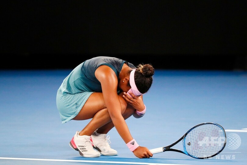 大坂は勝利が決まると膝をついて喜び、メルボルンパーク(Melbourne Park)に詰めかけたファンからの大歓声にお辞儀をして応えた。全米オープンの決勝では対戦相手のセレーナ・ウィリアムス(Serena Williams、米国)が主審と騒動を起こし、試合後に会場からブーイングが巻き起こると大坂は涙を流したが、この日はその時とは対照的に笑顔を見せ、喜びの涙をこぼした。(c)AFP