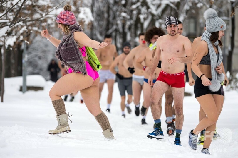 【1月27日 AFP】セルビアの首都ベオグラードで26日、下着姿でドナウ(Danube)川沿いを走る「アンダーパンツ・ラン(Underpants Run)」が開催された。この日は気温が0度近くまで冷え込んだが、参加者たちは笑顔でコースを駆け抜けた。(c)AFP