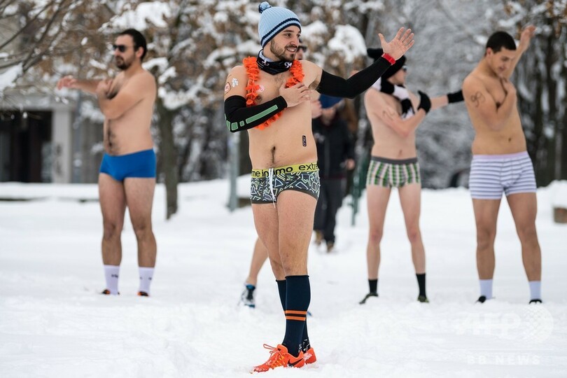 【1月27日 AFP】セルビアの首都ベオグラードで26日、下着姿でドナウ(Danube)川沿いを走る「アンダーパンツ・ラン(Underpants Run)」が開催された。この日は気温が0度近くまで冷え込んだが、参加者たちは笑顔でコースを駆け抜けた。(c)AFP