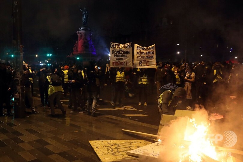 パリなど複数の都市では、夜間もデモの継続が計画されていたが、パリのAFP記者によると、レピュブリック広場(Place de la Republique)では警官隊が催涙ガスや放水砲、閃光(せんこう)弾(スタングレネード)を用いて集まっていた数百人を退散させた。
