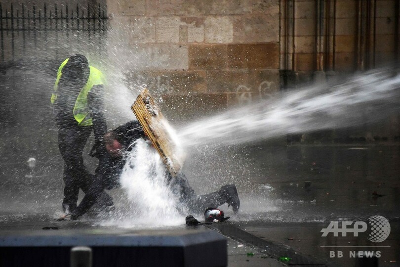 パリでは、黄ベストデモの定例集結場所の一つ、バスチーユ広場(Place de la Bastille)で、催涙ガスや放水車でデモ隊を制圧しようとする警官隊に、一部参加者らは建築中のビルから投石。地元当局によると、パリ全体での拘束者は223人に上った。