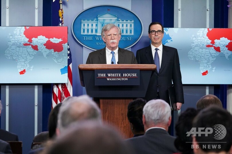 ボルトン補佐官は記者会見で、ベネズエラに米兵を動員する可能性を排除せず、「大統領はこの問題に関し、あらゆる選択肢があることを明確にしている」と述べた。(c)AFP
