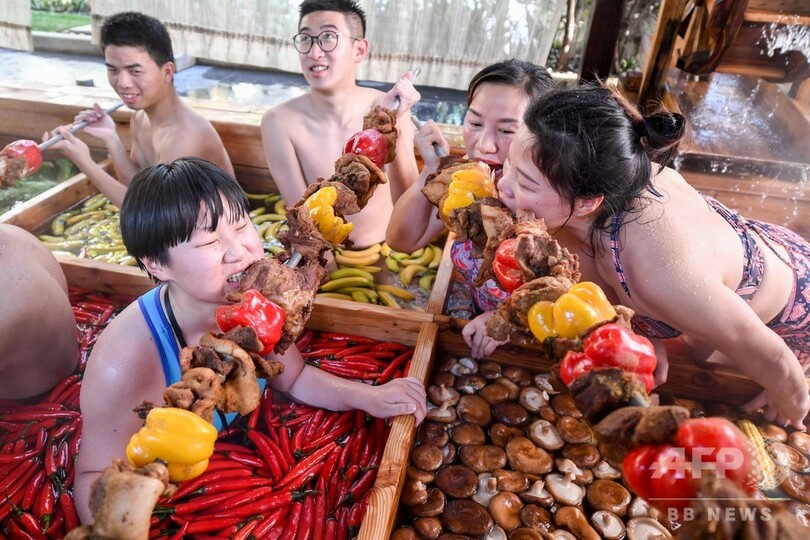 ニュース ライフ こぼれ話 「火鍋」に入って健康促進、春節間近の中国 2019年1月29日 13:06 発信地:杭州/中国 [ 中国 中国・台湾 ] このニュースをシェア ‹ › ❮ 2/4 ❯ 中国浙江省杭州市のホテルに登場した巨大鍋形温泉に漬かりながら食事をする人々(2019年1月27日撮影)。(c) STR / AFP 画像作成中 ! 【1月29日 AFP】中国浙江(Zhejiang)省杭州(Hangzhou)市のホテルにこのほど、中国の人気料理、火鍋を模した巨大な鍋形の温泉が登場した。2月5日の春節を控えた健康促進イベントで、レタスや唐辛子、トウモロコシが浮いた温泉に漬かりながら、料理や飲み物を楽しむ人の姿が見られた。 火鍋は、スープの入った鍋に肉や野菜などの具材を入れて家族や友人と食べる料理で、冬季のふさぎ込んだ気持ちを吹き飛ばすと言われている。(c)AFP ライフ 一覧へ> メディア・報道関係・法人の方向け 写真・動画 購入のお問合せ>