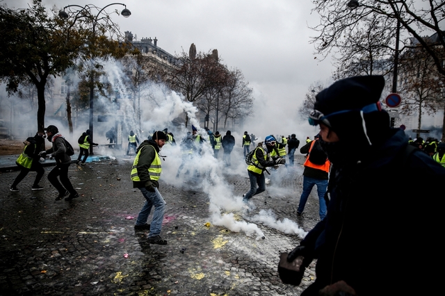 2018年11月中旬から始まったジレ・ジョーヌは、過去数十年のフランスで最悪の暴動と化した。数百人が逮捕され、何百万ユーロもの損害が生じ、4人が死亡した。警察は催涙ガス、放水銃、閃光発音筒(スタングレネード)を使用している。当初は生活水準の低下に抗議する人々が始めたデモに、破壊行為や迷惑行為を行う人々が加わり、デモによる被害は甚大なものとなった──。