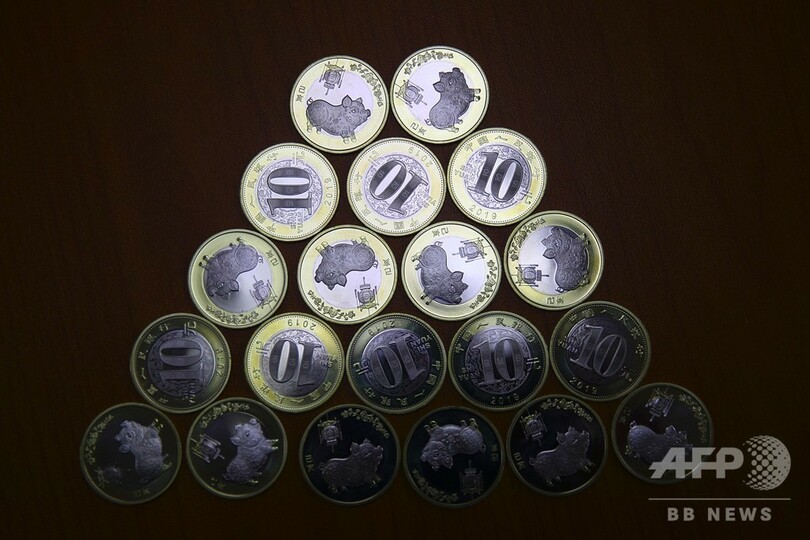 10元(約162円)の記念硬貨は直径27ミリ、材質は2色に色付けされた銅製。発行数は2億5000枚。(c)CNS/JCM/AFPBB News