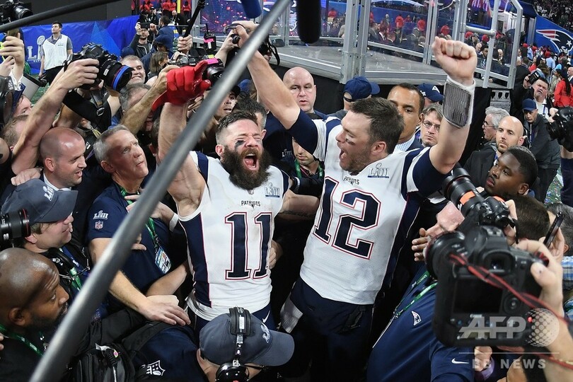 この勝利でペイトリオッツは、スーパーボウルの優勝回数をピッツバーグ・スティーラーズ(Pittsburgh Steelers)に並ぶ最多6回に伸ばしている。またスーパーボウルMVPには、貴重なキャッチを何本も決め、重要な局面でペイトリオッツを優勢にさせる活躍を見せたレシーバーのジュリアン・エデルマン(Julian Edelman)が選出された。(c)AFP/Rob Woollard