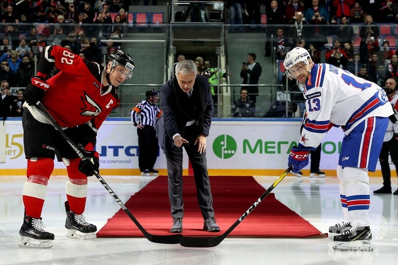 モウリーニョ氏はこの日、KHLのアバンガルド・オムスク(Avangard Omsk)からプロモーションイベントに招待され、同チーム対SKAサンクトペテルブルク(SKA Saint Petersburg)の試合前に写真にサインをした。