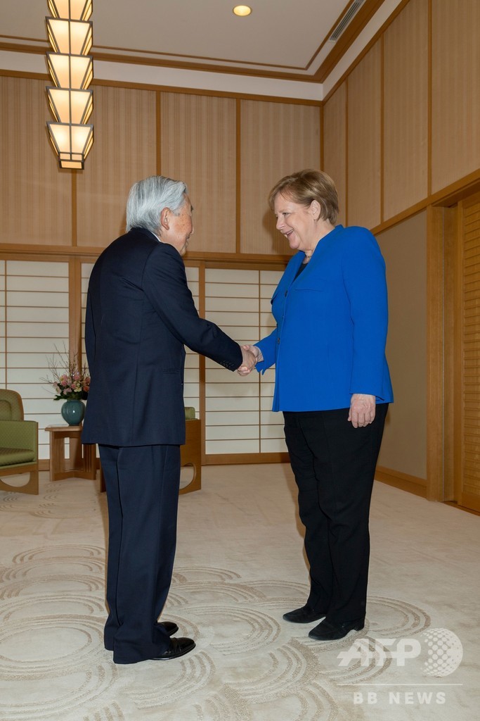 ニュース 政治・経済 独メルケル首相、天皇陛下と会見 2019年2月5日 13:30 発信地:東京 [ 日本 アジア・オセアニア ドイツ ヨーロッパ ] このニュースをシェア ‹ › ❮ 2/2 ❯ 皇居で天皇陛下と握手をするドイツのアンゲラ・メルケル首相。宮内庁提供(2019年2月5日撮影)。(c)AFP PHOTO / IMPERIAL HOUSEHOLD AGENCY 画像作成中 ! 【2月5日 AFP】訪日中のドイツのアンゲラ・メルケル(Angela Merkel)首相は5日、天皇陛下と皇居で会見した。(c)AFP 政治・経済 一覧へ> メディア・報道関係・法人の方向け 写真・動画 購入のお問合せ>