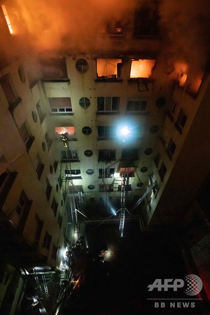 現場では当初、車両が入れない中庭に面した部分で火災が起きていたことから、救出活動が難航していた。ニコラさんは「消防隊も到着したばかりだったが、驚いたことに隊員らは完全に無力だった。車両も高いはしごもあったのに、何もできなかった」と話した。(c)AFP/Joseph Schmid and Guillaume Decamme