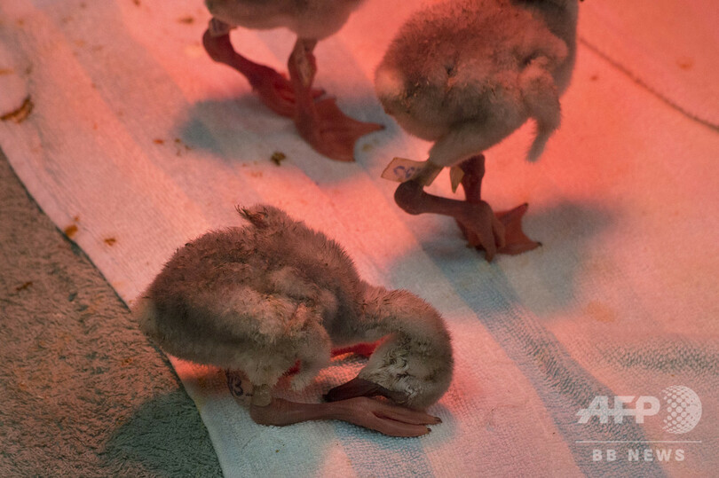 親鳥に捨てられたフラミンゴのひな2000羽保護 南アフリカ