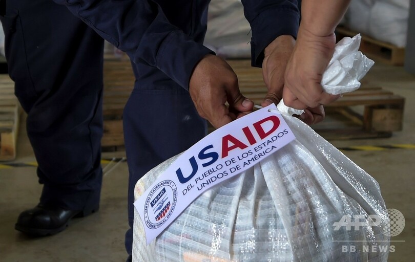 グアイド氏は米国からの食料や医薬品を受け入れようとしているが、ベネズエラ軍がコロンビアとの国境で搬入を妨害しているため、物資はコロンビア側の倉庫に滞留している。(c)AFP