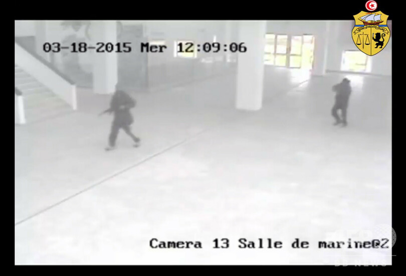 バルドー博物館の襲撃では、カラシニコフ銃で武装した男2人が、21人の観光客とチュニジア人の警備員1人を殺害。日本人3人の他、フランス人4人、イタリア人4人、スペイン人2人が犠牲となり、銃撃犯らは射殺された。(c)AFP/ Kaouther Larbi