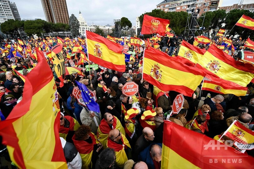 スペイン首都で「20万人」デモ、右派呼び掛けで政府のカタルーニャ政策に抗議