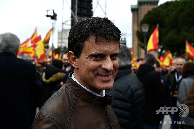 集会には、出身地バルセロナの市長選に立候補を表明したフランスのマニュエル・バルス(Manuel Valls)元首相や、ペルー出身のノーベル賞受賞作家で1990年代にスペインの市民権を取得したマリオ・バルガス・リョサ(Mario Vargas Llosa)氏の姿もあった。(c)AFP/Alvaro VILLALOBOS