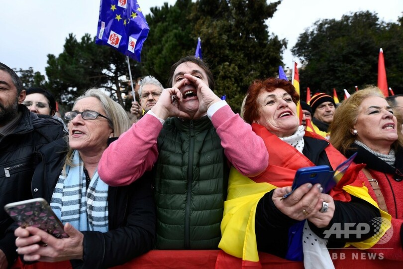 「統一スペインのため、今すぐ選挙を!」とのスローガンを掲げた集会では、国旗を振る参加者らが、カタルーニャ独立支持派との交渉で融和的な姿勢をとるサンチェス首相に抗議した。