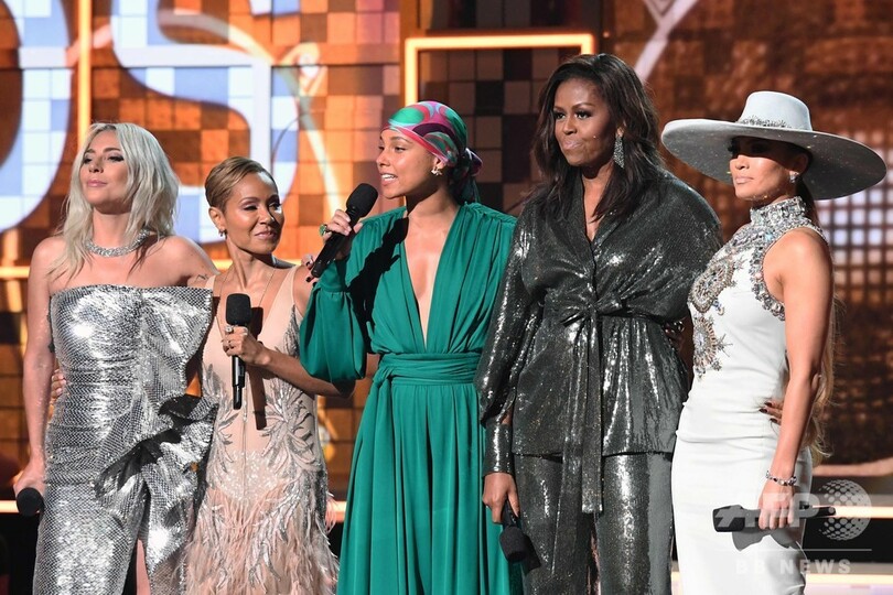【2月11日 AFP】米カリフォルニア州ロサンゼルスで開催された第61回グラミー賞(Grammy Awards)授賞式に、ミシェル・オバマ(Michelle Obama)前大統領夫人がサプライズで登場し、レディー・ガガ(Lady Gaga)やジェニファー・ロペス(Jennifer Lopez)、司会のアリシア・キーズ(Alicia Keys)らと並んで、音楽と女性のエンパワーメント(社会的地位向上)について語った。
