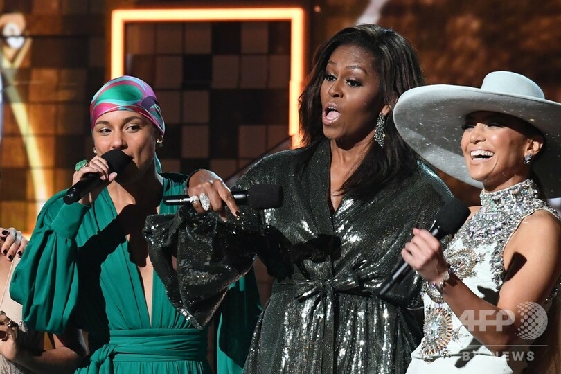 【2月11日 AFP】米カリフォルニア州ロサンゼルスで開催された第61回グラミー賞(Grammy Awards)授賞式に、ミシェル・オバマ(Michelle Obama)前大統領夫人がサプライズで登場し、レディー・ガガ(Lady Gaga)やジェニファー・ロペス(Jennifer Lopez)、司会のアリシア・キーズ(Alicia Keys)らと並んで、音楽と女性のエンパワーメント(社会的地位向上)について語った。