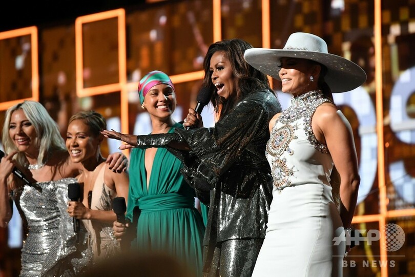 【2月11日 AFP】米カリフォルニア州ロサンゼルスで開催された第61回グラミー賞(Grammy Awards)授賞式に、ミシェル・オバマ(Michelle Obama)前大統領夫人がサプライズで登場し、レディー・ガガ(Lady Gaga)やジェニファー・ロペス(Jennifer Lopez)、司会のアリシア・キーズ(Alicia Keys)らと並んで、音楽と女性のエンパワーメント(社会的地位向上)について語った。