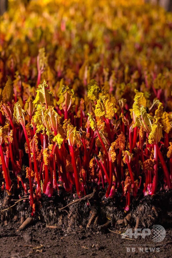 【2月28日 AFP】英イングランド北部でルバーブが収穫の最盛期を迎えた。農家はろうそくの明かりがともった納屋で、現代の英国料理でトレンドとなっているこの野菜を収穫し、収入を増やしている。