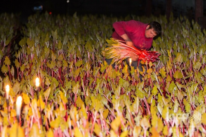 【2月28日 AFP】英イングランド北部でルバーブが収穫の最盛期を迎えた。農家はろうそくの明かりがともった納屋で、現代の英国料理でトレンドとなっているこの野菜を収穫し、収入を増やしている。