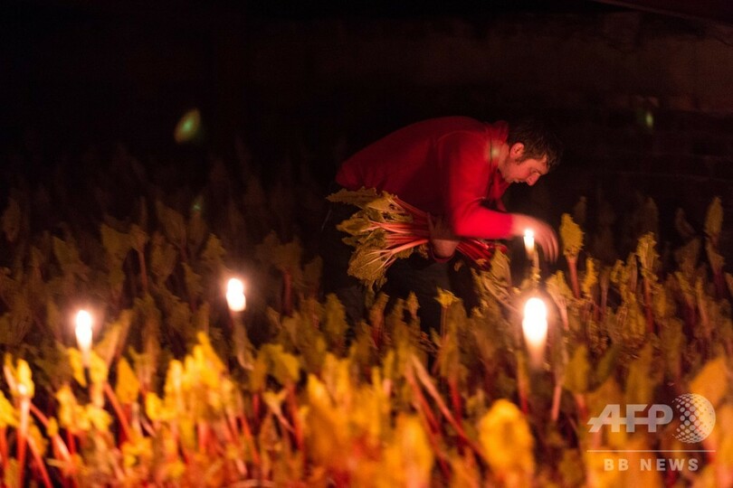 【2月28日 AFP】英イングランド北部でルバーブが収穫の最盛期を迎えた。農家はろうそくの明かりがともった納屋で、現代の英国料理でトレンドとなっているこの野菜を収穫し、収入を増やしている。