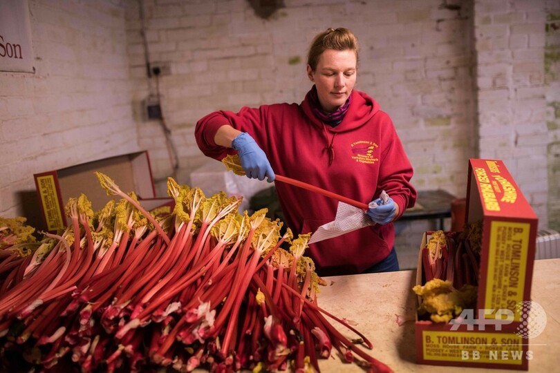 【2月28日 AFP】英イングランド北部でルバーブが収穫の最盛期を迎えた。農家はろうそくの明かりがともった納屋で、現代の英国料理でトレンドとなっているこの野菜を収穫し、収入を増やしている。