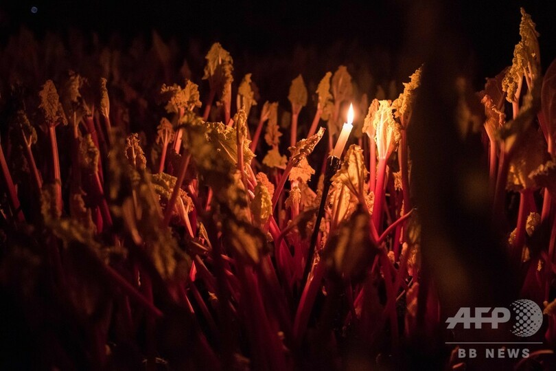 【2月28日 AFP】英イングランド北部でルバーブが収穫の最盛期を迎えた。農家はろうそくの明かりがともった納屋で、現代の英国料理でトレンドとなっているこの野菜を収穫し、収入を増やしている。
