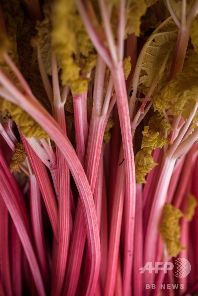 トムリンソンさんによると、ルバーブは過去10年間で需要が跳ね上がり、今ではスイスやニューヨークのレストランに定期的に届けているという。(c)AFP