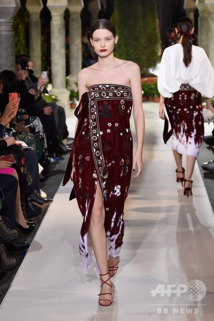 13日には、クリエイティブ・ディレクターのローラ・キム(Laura Kim)とフェルナンド・ガルシア(Fernando Garcia)が手がける「オスカー・デ・ラ・レンタ(Oscar de la Renta)」が新作を発表した。(c)AFP/Getty Images