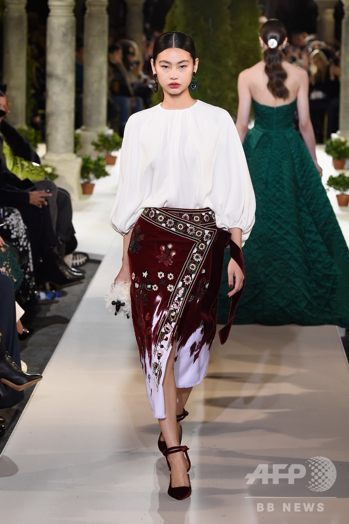 13日には、クリエイティブ・ディレクターのローラ・キム(Laura Kim)とフェルナンド・ガルシア(Fernando Garcia)が手がける「オスカー・デ・ラ・レンタ(Oscar de la Renta)」が新作を発表した。(c)AFP/Getty Images
