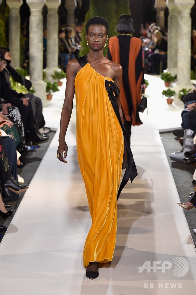 13日には、クリエイティブ・ディレクターのローラ・キム(Laura Kim)とフェルナンド・ガルシア(Fernando Garcia)が手がける「オスカー・デ・ラ・レンタ(Oscar de la Renta)」が新作を発表した。(c)AFP/Getty Images