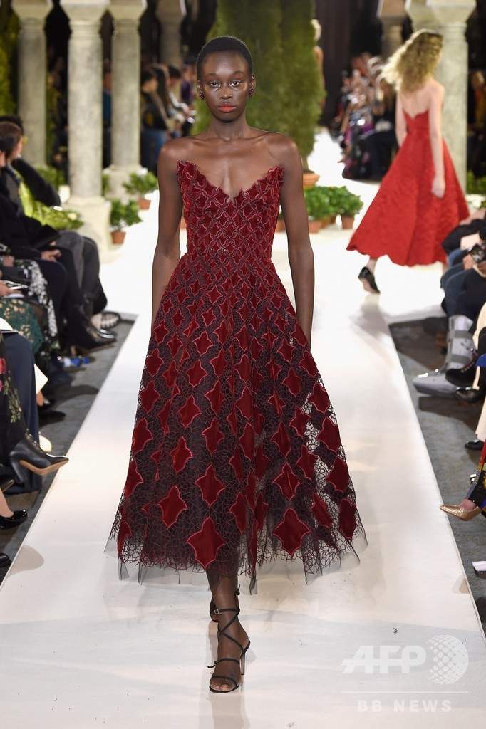 13日には、クリエイティブ・ディレクターのローラ・キム(Laura Kim)とフェルナンド・ガルシア(Fernando Garcia)が手がける「オスカー・デ・ラ・レンタ(Oscar de la Renta)」が新作を発表した。(c)AFP/Getty Images