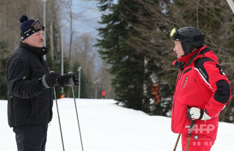 【2月15日 AFP】ロシアのウラジーミル・プーチン(Vladimir Putin)大統領と、ベラルーシのアレクサンドル・ルカシェンコ(Alexander Lukashenko)大統領は13日、ロシア南部ソチ(Sochi)のリゾートでスキーを楽しんだ。(c)AFP