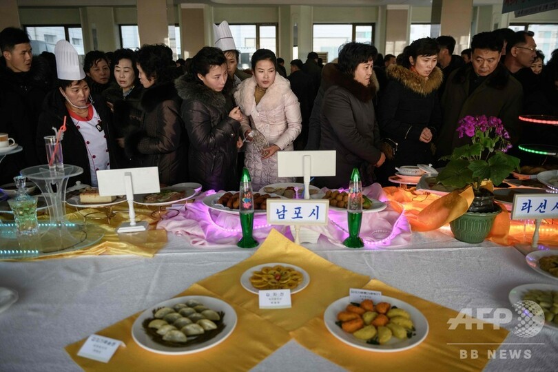 【2月14日 AFP】食料不足が慢性化している北朝鮮の首都平壌でこのほど、調理師ら約300人が参加する料理コンテストが開催された。会場となった国営レストランでは、大勢の観客が見守る中、シェフらが腕を振るった料理を慎重に並べた。