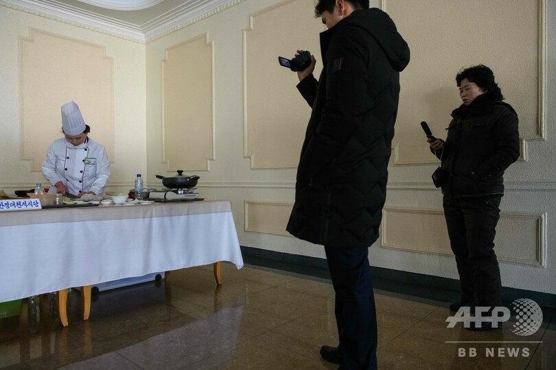 【2月14日 AFP】食料不足が慢性化している北朝鮮の首都平壌でこのほど、調理師ら約300人が参加する料理コンテストが開催された。会場となった国営レストランでは、大勢の観客が見守る中、シェフらが腕を振るった料理を慎重に並べた。