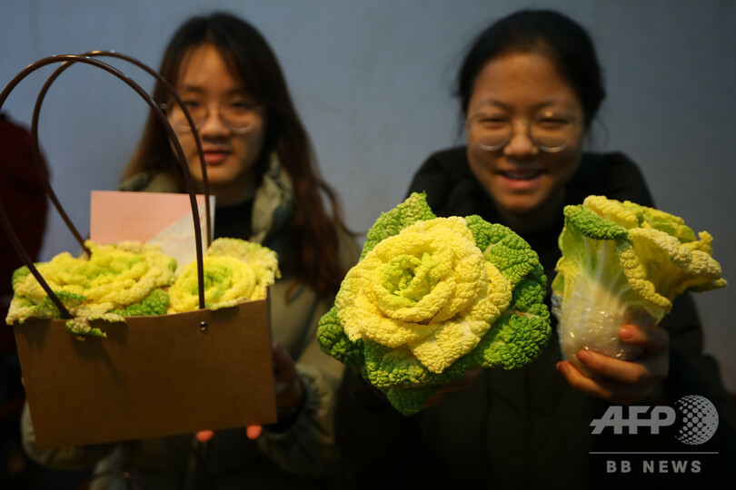 同学院の侯喜林(Hou Xilin)教授が長年品種改良を重ねた「白菜」が人気を集めている。黄色いバラに似ており、食感も良く、白菜の新品種としてさまざまなルートで販売されている。(c)CNS/JCM/AFPBB News