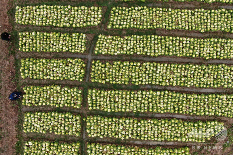 同学院の侯喜林(Hou Xilin)教授が長年品種改良を重ねた「白菜」が人気を集めている。黄色いバラに似ており、食感も良く、白菜の新品種としてさまざまなルートで販売されている。(c)CNS/JCM/AFPBB News