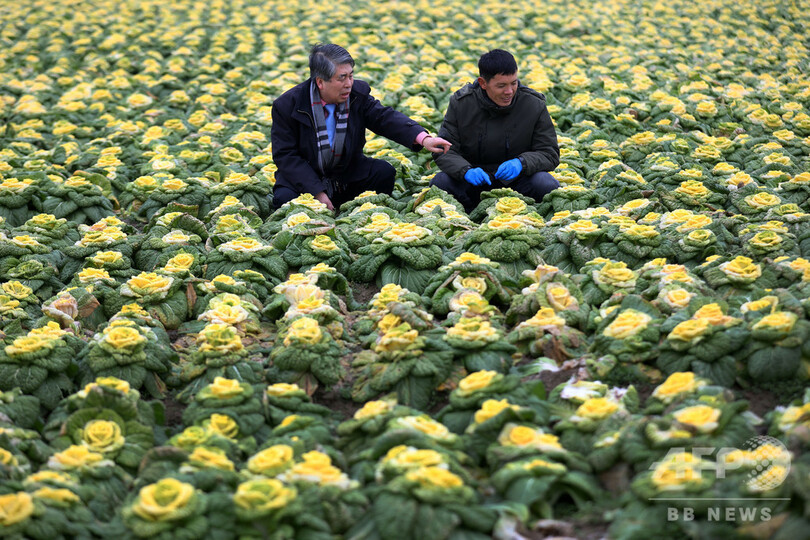 同学院の侯喜林(Hou Xilin)教授が長年品種改良を重ねた「白菜」が人気を集めている。黄色いバラに似ており、食感も良く、白菜の新品種としてさまざまなルートで販売されている。(c)CNS/JCM/AFPBB News